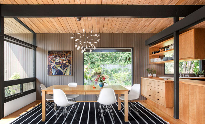 Apart from that, the lighting of the rest of the kitchen can easily follow the modern needs and tendencies: recessed lighting and under cabinet lighting can be introduced in order to maintain minimalism and functionality. And of course, the natural light penetrating from those large windows openings and open-floor plans so characteristic for the Mid Century Modern aesthetics. Adorable results can be achieved with some hidden LED installations or rim-frames.